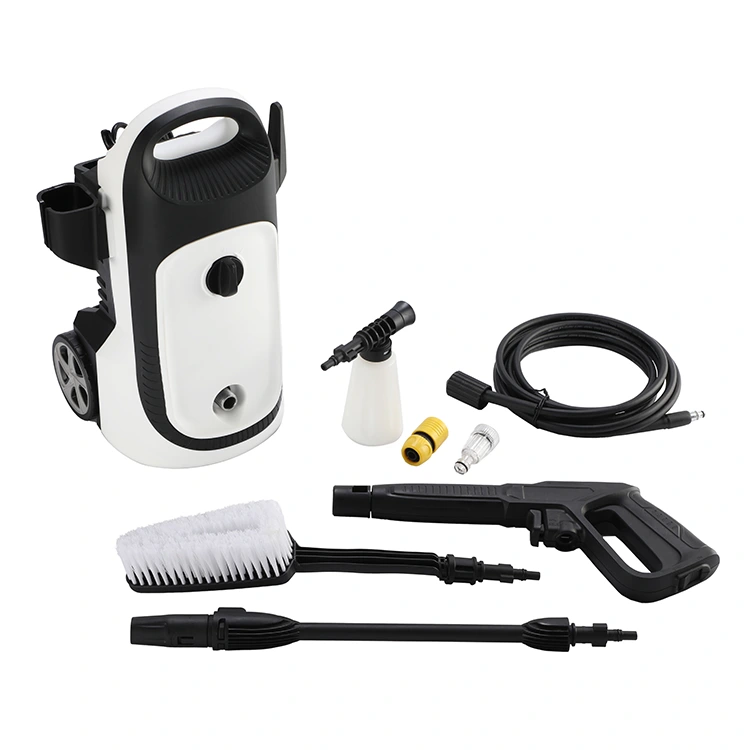 Deze hogedrukreinigingsmachine heeft een lichtgewicht ontwerp van slechts 6 kg, uitgerust met wielen voor gemakkelijk transport en bediening. Hij heeft een compacte structuur en een klein formaat, bespaart ruimte en is gemakkelijk op te bergen, ideaal voor thuisgebruik, kleine winkels en andere beperkte ruimtes.